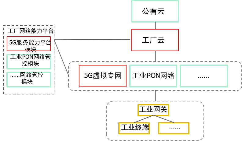 全連接云網產品:5G虛擬企業專網+工業PON/其他(紅框+綠框)