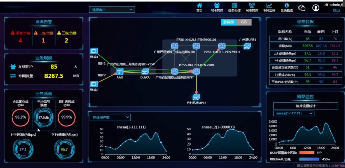 自運維能力:提供專網整體視圖和各設備運行狀態、監控設備告警,并提供初級處置能力和在線申請運營商協查等。