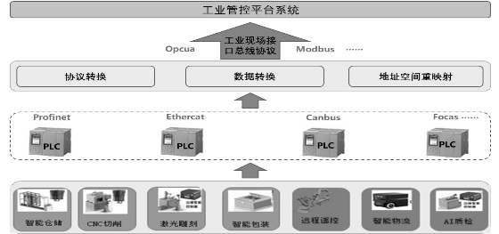工業現場設備種類繁多,接口和總線協議不統一,多數工業現場設備是非標總線接口和非標總線協議。為了實現設備的互聯互通,實現設備數據采集,通過協議兼容將不同的網絡和通信協議統一映射成統一協議,各種網絡和協議之間通過統一協議實現信息的交互。協議兼容的過程就是講異種通信協議通過協議轉換、數據轉換、地址空間重映射等技術手段轉換成統一協議。工業現場常用的總線協議包括 Profinet、Profibus、CClink、EthernetIP、Modbus、FOCAS等,后續可以考慮以統一協議實現承載。