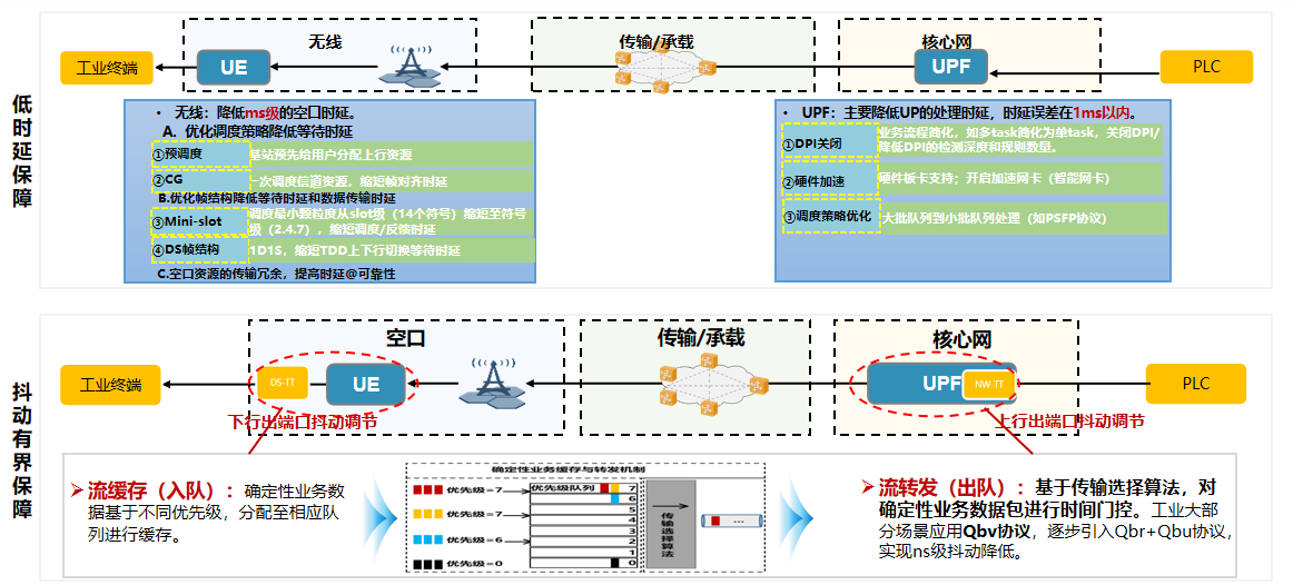 5G時延抖動有界保障,當(dāng)前主要通過TSN 802.1Qbv的時間門口機(jī)制來實現(xiàn),即通過分別位于UE和UPF的DS-TT和NW-TT來實現(xiàn)時延的調(diào)節(jié)。