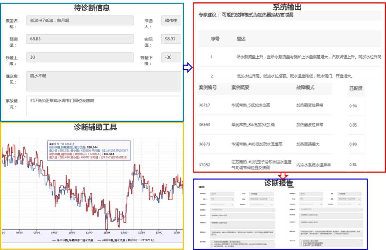 南京化學工業園熱電有限公司2018年10月29日從預警系統推送至診斷系統一條告警信息:“前置泵電機軸承溫度高”,診斷系統根據告警信息推薦的案例中詳細介紹了前置泵電機軸承溫度高的主要原因與處理方法,用戶參考推薦案例,判斷軸承溫度高的原因為潤滑油過量,通過調整自動加油裝置的加油頻率解決了該問題,而這一案例也作為新的案例進入了知識庫,當該問題再次發生時,診斷系統會立即推送該案例給用戶,起到知識傳承的作用,診斷過程參見圖16。