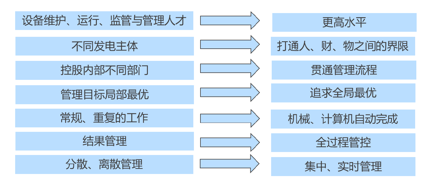 1、在“十三五”業務戰略規劃指引下,為了更好的應對電力市場改革,打造華潤電力核心競爭力。當下階段必須要推動創新,在電力領域建立標桿示范作用,引領電力行業的運營管理,促進華潤電力實現電力生產的有效管控和高效運營。通過建設一個匯集各項目公司離散數據的統一集中監測數據平臺,并運用大數據分析、人工智能等高級人工智能算法來輔助專家團隊進行集中監測與分析,從而有效推動華潤電力運營管理的流程化、 標準化、專業化、信息化、移動化、開放化、智能化,達到提升效益、提高效率的目標。