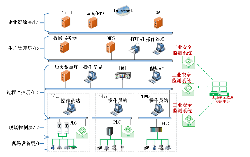 工業(yè)安全監(jiān)測(cè)系統(tǒng)(ISD)是針對(duì)工控系統(tǒng)網(wǎng)絡(luò)環(huán)境進(jìn)行異常監(jiān)測(cè)、威脅發(fā)現(xiàn)和安全審計(jì)的一體化產(chǎn)品。產(chǎn)品通過(guò)旁路方式部署,對(duì)工控系統(tǒng)的運(yùn)行數(shù)據(jù)進(jìn)行被動(dòng)無(wú)損采集,實(shí)時(shí)發(fā)現(xiàn)信息安全威脅和其造成的系統(tǒng)運(yùn)行異常。產(chǎn)品可部署于生產(chǎn)管理層、過(guò)程監(jiān)控層、現(xiàn)場(chǎng)控制層,協(xié)助運(yùn)營(yíng)人員及時(shí)發(fā)現(xiàn)問(wèn)題并響應(yīng)處理,提升工業(yè)生產(chǎn)連續(xù)性水平。