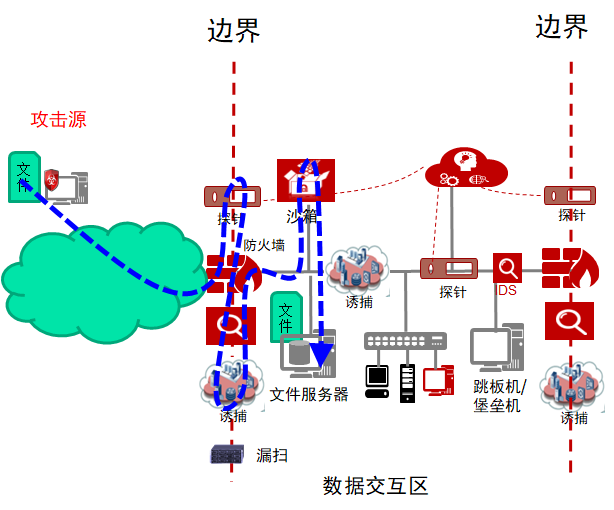 圖1 主動防御系統(tǒng)的部署總體示意圖