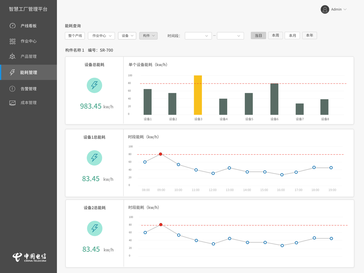 能耗管理信息展示,可以提供以設(shè)備和時(shí)間為維度的實(shí)時(shí)和歷史能耗數(shù)據(jù)的查看,并以這兩個(gè)維度來進(jìn)行相應(yīng)的檢索與橫向?qū)Ρ龋页龈吣芎脑O(shè)備和高能耗時(shí)間段,從而發(fā)現(xiàn)能耗異常并告警。主要內(nèi)容包含: