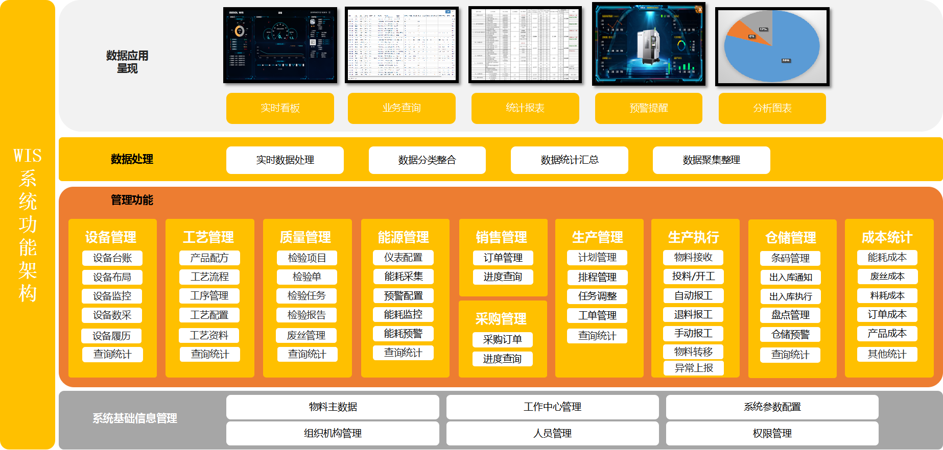 項(xiàng)目通過(guò)工廠數(shù)字化制造運(yùn)營(yíng)系統(tǒng)(iSESOL WIS)建設(shè),以iSESOL工業(yè)互聯(lián)網(wǎng)平臺(tái)為核心,串聯(lián)能耗管理模塊、設(shè)備運(yùn)行監(jiān)控模塊、工藝管理模塊、生產(chǎn)管理模塊、生產(chǎn)執(zhí)行模塊、質(zhì)量管理模塊、倉(cāng)儲(chǔ)管理規(guī)模等,實(shí)現(xiàn)企業(yè)生產(chǎn)管理信息化,從銷售訂單創(chuàng)建、計(jì)劃自動(dòng)分解、生產(chǎn)任務(wù)自動(dòng)排程、能耗管理優(yōu)化到質(zhì)量追溯、倉(cāng)儲(chǔ)管理全過(guò)程的信息化和智能化,充分利用信息化的手段,達(dá)到提高生產(chǎn)效率、降低生產(chǎn)成本、精細(xì)生產(chǎn)管理的目標(biāo),為客戶提供可跟蹤質(zhì)量的優(yōu)質(zhì)產(chǎn)品。