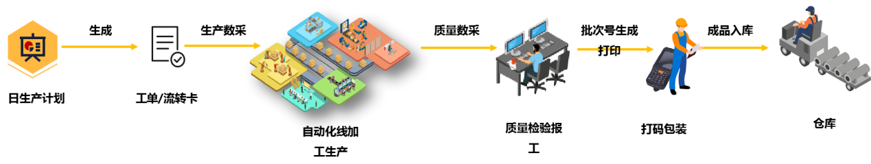 (3)以電子工單或流轉(zhuǎn)卡為載體,進(jìn)行生產(chǎn)數(shù)據(jù)和設(shè)備數(shù)據(jù)的自動(dòng)采集,實(shí)現(xiàn)生產(chǎn)過(guò)程中人員、設(shè)備、質(zhì)量、產(chǎn)品等信息相關(guān)聯(lián),生產(chǎn)過(guò)程可視化,過(guò)程可追溯,實(shí)時(shí)掌握生產(chǎn)進(jìn)度、料耗情況和品質(zhì)控制等。