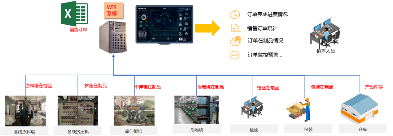 通過(guò)WIS系統(tǒng)完成對(duì)銷售訂單的管理,以及對(duì)銷售訂單執(zhí)行情況的跟蹤,可實(shí)時(shí)掌握銷售訂單完成情況,系統(tǒng)根據(jù)在制品情況、庫(kù)存情況、生產(chǎn)加工節(jié)拍,自動(dòng)進(jìn)行訂單遇超期預(yù)警,同時(shí)支持銷售訂單管理、訂單進(jìn)度統(tǒng)計(jì)、訂單超期預(yù)警,為銷售部門與生產(chǎn)部門協(xié)同提供信息實(shí)時(shí)穿透。