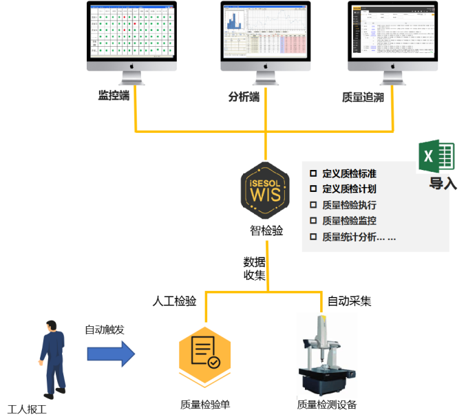(2)產(chǎn)品質(zhì)量檢驗(yàn)主要通過(guò)人工操作質(zhì)量檢測(cè)設(shè)備,對(duì)產(chǎn)品進(jìn)行質(zhì)量檢驗(yàn),主要通過(guò)紙質(zhì)表格或檢測(cè)報(bào)告進(jìn)行質(zhì)量數(shù)據(jù)收集。質(zhì)量數(shù)據(jù)與生產(chǎn)數(shù)據(jù)未進(jìn)行有效的關(guān)聯(lián),無(wú)法形成有效的追溯。