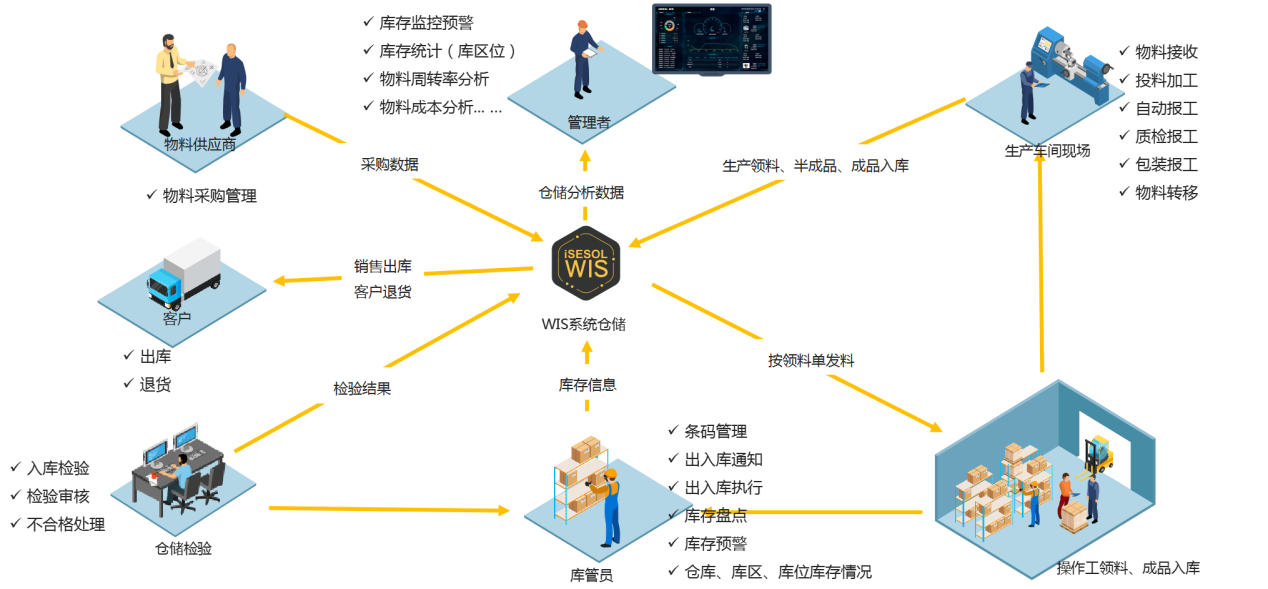 工廠數(shù)字化制造運(yùn)營(yíng)系統(tǒng)(iSESOL WIS)以iSESOL工業(yè)互聯(lián)網(wǎng)平臺(tái)為依托,通過(guò)為企業(yè)提供生產(chǎn)運(yùn)行、維護(hù)運(yùn)行、質(zhì)量運(yùn)行和庫(kù)存運(yùn)行等生產(chǎn)管理模塊,實(shí)現(xiàn)裝備技術(shù)建立、生產(chǎn)流程管理、訂單協(xié)同、即時(shí)分享管理等服務(wù)模式的智能化,從而提高企業(yè)生產(chǎn)管理水平、改善產(chǎn)品質(zhì)量、監(jiān)控生產(chǎn)過(guò)程成本,幫助企業(yè)實(shí)現(xiàn)提質(zhì)降本增效。