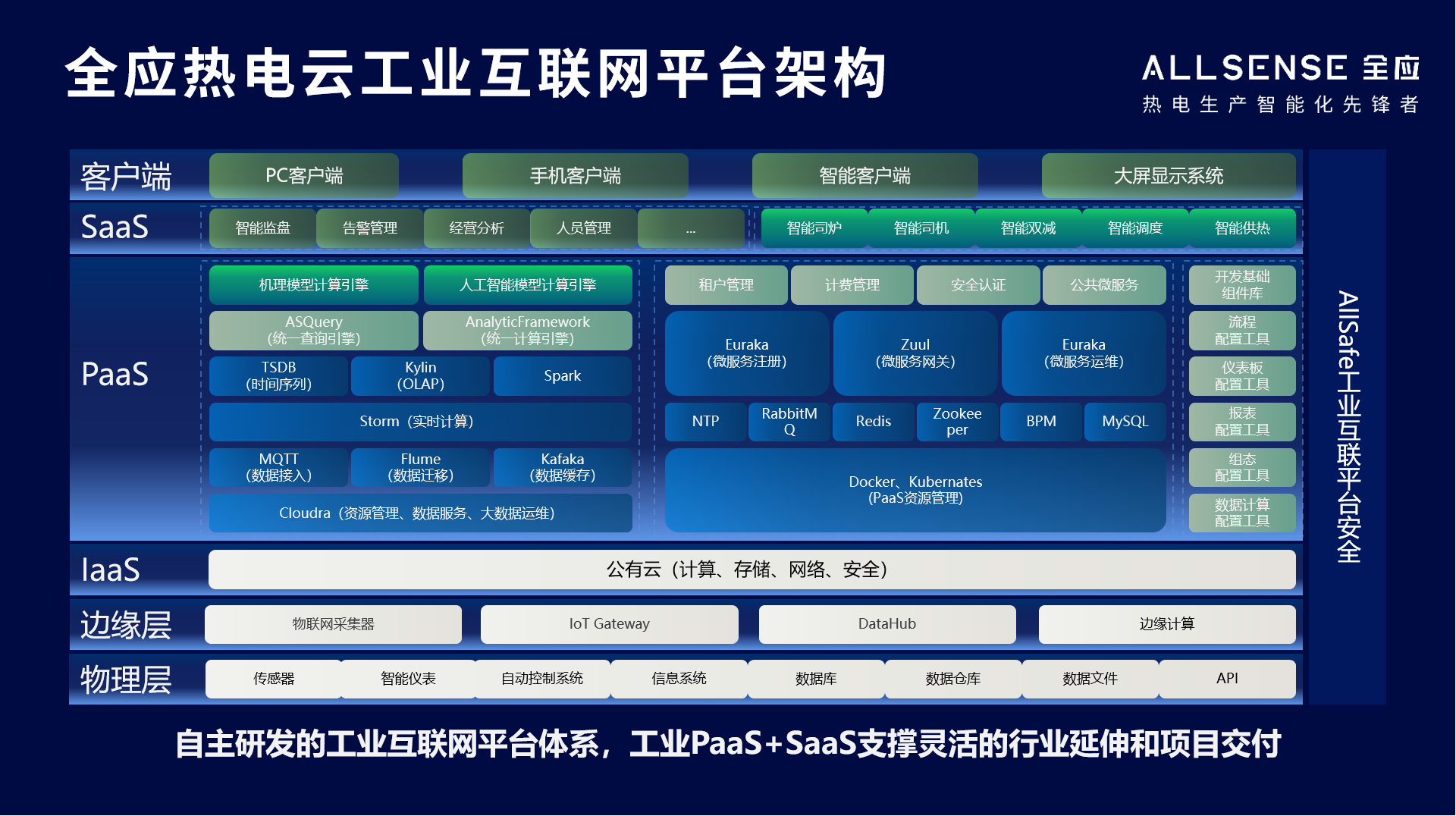 全應熱電云熱電智能化解決方案采用業界常用的工業互聯網平臺架構:“云+邊+端”,其中: