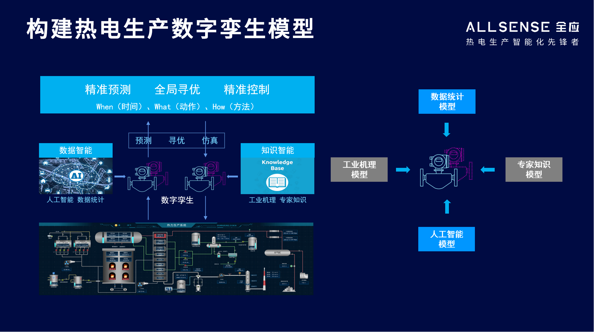 面對該企業當前熱電生產中面臨的突出問題,上海全應科技有限公司(以下簡稱“全應科技”)根據該企業當前設備情況以及具體生產工況,依托全應熱電云(面向熱電行業的工業互聯網),結合工業機理和專家知識,建立了覆蓋熱電生產系統端到端的數字孿生模型,覆蓋鍋爐、汽機、供熱管網、減溫減壓器等,實現該企業的生產系統進行全方位的智能化升級,為運行人員提供全局最優的最佳的運行參數。