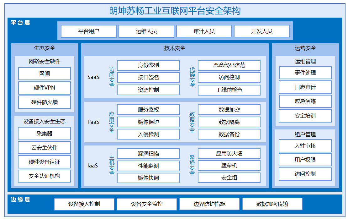 工業互聯網平臺由PaaS層、大數據平臺、通用PaaS平臺、工業PaaS組件、應用開發與集成平臺組成,邊緣層由物聯網平臺與數據采集組件組成。
