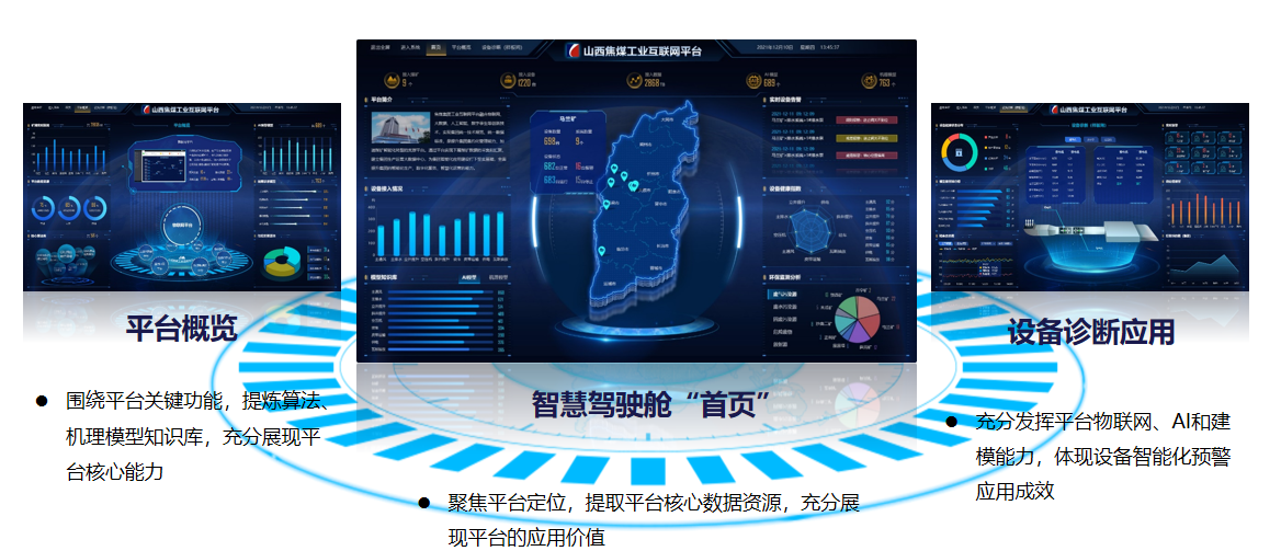 形成完整的工業互聯網平臺技術架構體系,建立7大核心子平臺;完成 9 個下屬煤礦,共計52 個系統統一接入至平臺;打造智能駕駛艙,賦能精益化管理。