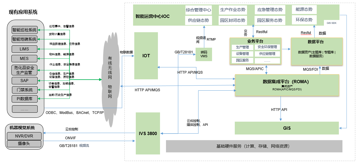 2)實現PI數據庫、SAP、LIMS、QHSE、MES、智能巡檢、智能地磅等16個子系統的融合集成和統一接入管理,打通系統壁壘,實現高效的系統數據聯動,提高園區運行效率,實現園區內數據、應用的深度融合,消除信息孤島,實現業務聯動管控。