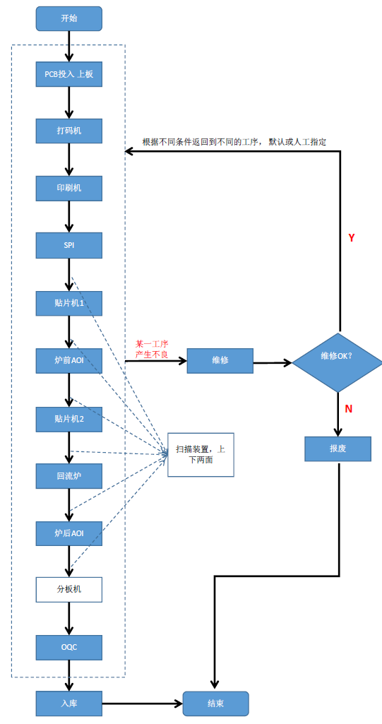 在生產過程管理的MES系統中,實現在SMT貼片生產過程的PCB掃碼、物料上料以及生產設備的數據采集和關聯,以及生產過程的物料使用情況追溯可視。
