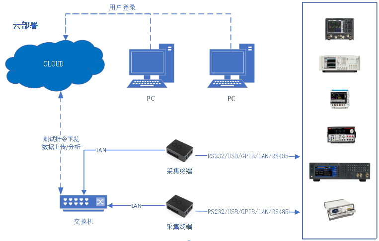 圖10 生產云測試架構(部分傳輸已經升級為光纖通信方案)