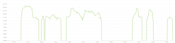 蒸汽和水的流量在熱電控制中也非常重要,但許多流量計(jì)在流量低于一定量后容易進(jìn)入流量計(jì)的檢測(cè)死區(qū),出現(xiàn)測(cè)量值歸零的現(xiàn)象,如下圖所示,當(dāng)流量低于15噸時(shí)測(cè)量值直接歸零:
