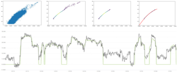 根據(jù)流體力學(xué)的伯努利方程,流量可以通過壓差進(jìn)行建模,所以可以利用死區(qū)外的流量數(shù)據(jù)對(duì)軟測(cè)量模型進(jìn)行訓(xùn)練,再泛化到死區(qū)內(nèi),即可獲得較為準(zhǔn)確的流量數(shù)據(jù),如下圖所示: