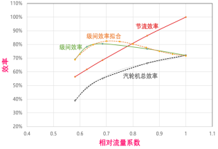 熱電廠的汽機(jī)大多采用節(jié)流方式對(duì)汽機(jī)負(fù)荷進(jìn)行調(diào)整,節(jié)流方式會(huì)導(dǎo)致蒸汽能量的損失。而熱電由于蒸汽負(fù)荷波動(dòng)大,所以汽機(jī)負(fù)荷會(huì)在較大范圍內(nèi)波動(dòng)。如果主蒸汽壓力不考慮汽機(jī)負(fù)荷的話,會(huì)導(dǎo)致低負(fù)荷段的汽機(jī)能效損失較大。如下圖展示了汽機(jī)總效率的計(jì)算原理: