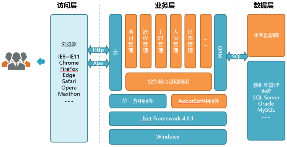 2. 數(shù)據(jù)訪問層采用微軟最新的Entity Framework 6.1.3框架作為ORM層,天然具有防SQL注入能力,且有效提高開發(fā)效率,降低缺陷率,進(jìn)而降低實施成本;