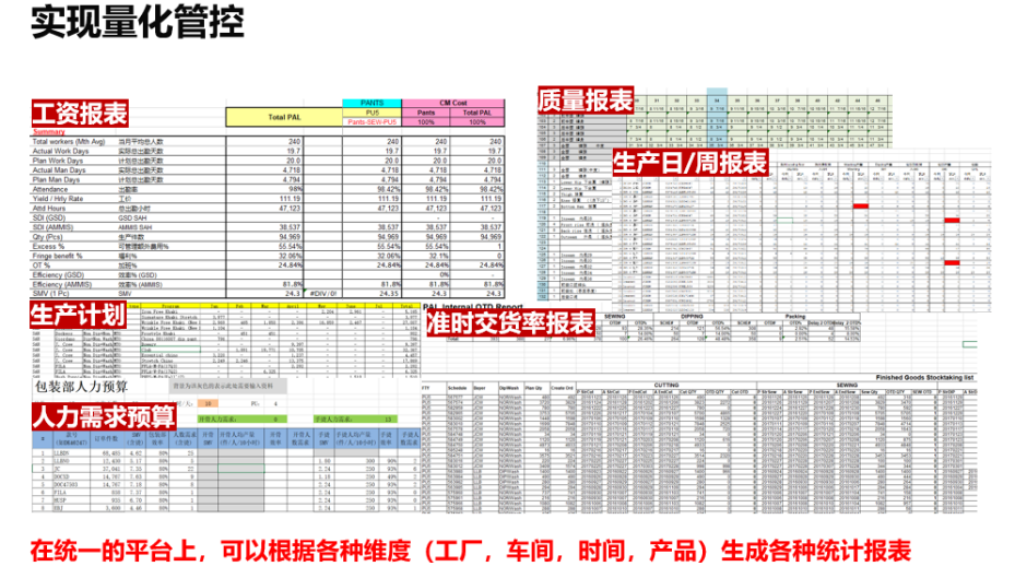 服裝智能云生產執行APP在實施的過程中明確,讓所有人員周知計劃目標的驗收日期,然后根據各個層級的目標,開始按照計劃落地執行。從每日到每周再到每月,執行過程嚴絲合縫。