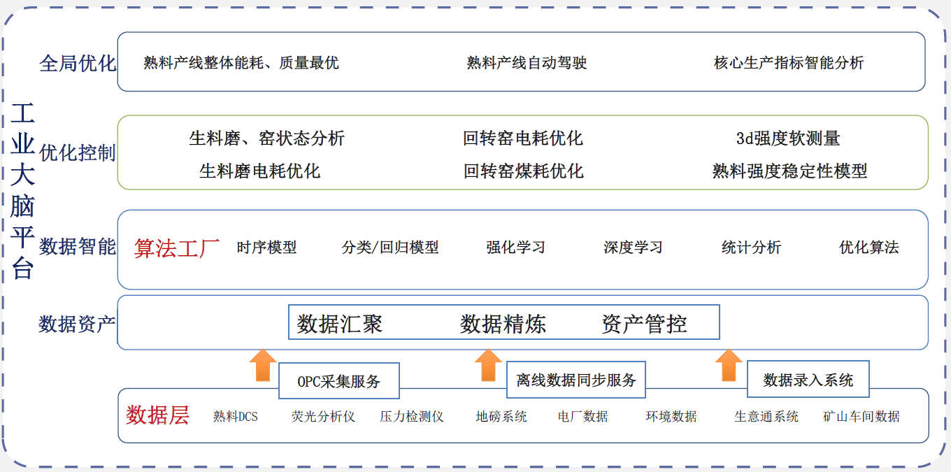 1) 將東華在水泥生產(chǎn)運(yùn)營過程中所產(chǎn)生的原材料數(shù)據(jù)、生產(chǎn)過程數(shù)據(jù)、品質(zhì)數(shù)據(jù)、能耗數(shù)據(jù)等進(jìn)行整合,消除信息孤島,把數(shù)據(jù)變成資產(chǎn);