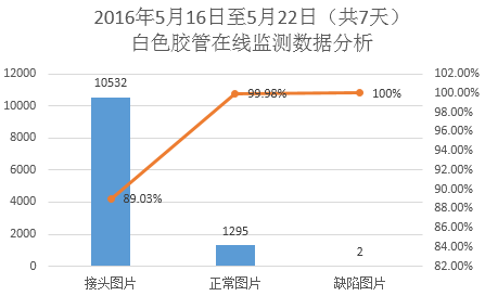 本項目重點圍繞質(zhì)量檢測需要的數(shù)據(jù)采集、數(shù)據(jù)傳輸以及數(shù)據(jù)處理和比對等主要環(huán)節(jié)。采集生產(chǎn)線電壓、擠膠壓力、冷卻溫度、牽引速度、運轉(zhuǎn)速度等數(shù)據(jù),數(shù)據(jù)流量約為1MB/s。通過千兆高速有線傳輸網(wǎng)絡(luò),傳輸至大數(shù)據(jù)計算分析平臺。同時采用4部工業(yè)攝像機對生產(chǎn)線末端輸出機的成品進行圖像拍照,每部攝像機的數(shù)據(jù)流量最大為29.5M/s,四部攝像機的數(shù)據(jù)流量為118M/s,每天產(chǎn)生的圖像數(shù)據(jù)量約為3T ,也采用千兆有線網(wǎng)絡(luò)進行傳輸。經(jīng)過在線質(zhì)量實時判決系統(tǒng)分析對比,將對比分析結(jié)果數(shù)據(jù)傳輸至大數(shù)據(jù)計算分析平臺,結(jié)合生產(chǎn)線采集數(shù)據(jù)進行智能決策分析。隨著對存儲量不斷增加的數(shù)據(jù)進行挖掘分析,生成產(chǎn)品質(zhì)量發(fā)展趨勢預(yù)測和生產(chǎn)線狀態(tài)預(yù)判,降低生產(chǎn)廢品率,縮短生產(chǎn)周期,提高企業(yè)的生產(chǎn)管理效率。