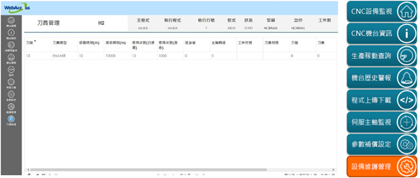 通過WebAccess/CNC可設(shè)置預(yù)警保養(yǎng)次數(shù),并監(jiān)控刀具的累計使用次數(shù),在到達界限值時及時預(yù)警通知保養(yǎng),以減少更換時間,保障生產(chǎn)品質(zhì)。