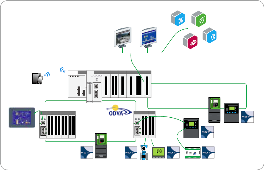 本方案采用工業(yè)級以太網(wǎng)光纖環(huán)網(wǎng)方案,確保網(wǎng)絡(luò)架構(gòu)的高效和冗余。目前在工業(yè)領(lǐng)域主流的工業(yè)以太網(wǎng)協(xié)議包括:Modbus TCP/IP、EtherNet/IP、ProfiNet、EtherCAT、POWERLINK等。本方案中的Modicon系列高端PLC系統(tǒng),全面支持Modbus TCP/IP和EtherNet/IP兩大工業(yè)以太網(wǎng)協(xié)議。Modicon系列PLC系統(tǒng)的設(shè)計基于開放的以太網(wǎng)技術(shù),從而有效地優(yōu)化了設(shè)備互連和通信。配合性能優(yōu)越的X80 通用I/O 平臺和靈活易用的Advantys STB/ETB I/O 平臺,可以完美實(shí)現(xiàn)系統(tǒng)的集成;強(qiáng)大的控制器提供更高水平的復(fù)雜網(wǎng)絡(luò)通信、顯示和應(yīng)用控制的處理能力。