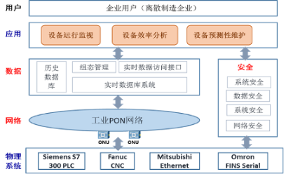 智能工廠工業PON網絡與數據采集解決方案旨在提供工業設備智慧互聯、適配多種工業設備PLC接口的工業數據采集、工業數據分析應用與技術方案。包括: