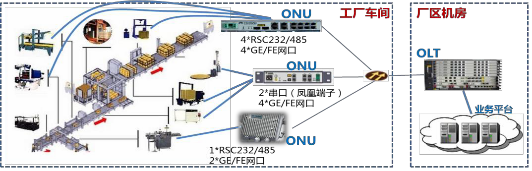 基于工業PON,提供設備聯網、視頻監控、能耗管控等應用。
