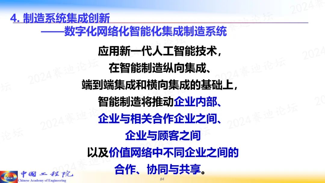 4月2日,由中國電子信息產(chǎn)業(yè)發(fā)展研究院(賽迪研究院)、工業(yè)和信息化部新型工業(yè)化研究中心主辦的2024賽迪論壇在京舉辦。中國工程院院士、國家制造強(qiáng)國建設(shè)戰(zhàn)略咨詢委員會主任周濟(jì)在主旨演講中表示,推進(jìn)人工智能賦能新型工業(yè)化,是推進(jìn)新型工業(yè)化,加快建設(shè)制造強(qiáng)國的技術(shù)路線。