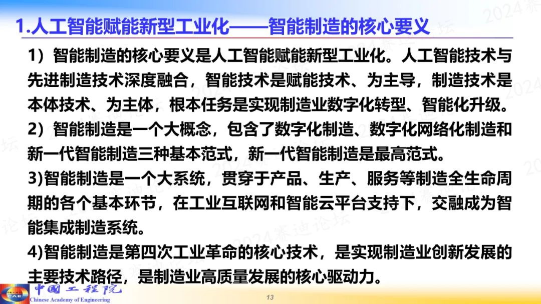 第一,人工智能技術(shù)與先進(jìn)制造技術(shù)正在深度融合,其中,人工智能技術(shù)是賦能技術(shù),為主導(dǎo);制造技術(shù)是本體技術(shù),為主體;根本任務(wù)是實現(xiàn)制造業(yè)數(shù)字化轉(zhuǎn)型、智能化升級。
