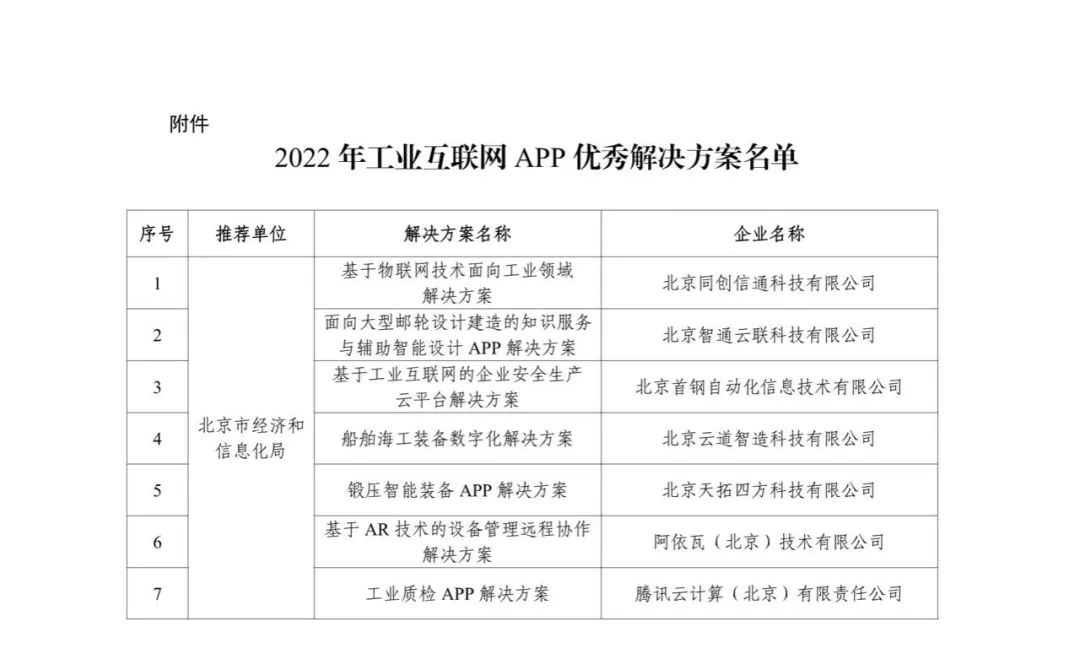 關(guān)于公布2022年工業(yè)互聯(lián)網(wǎng)APP優(yōu)秀解決方案名單的通知