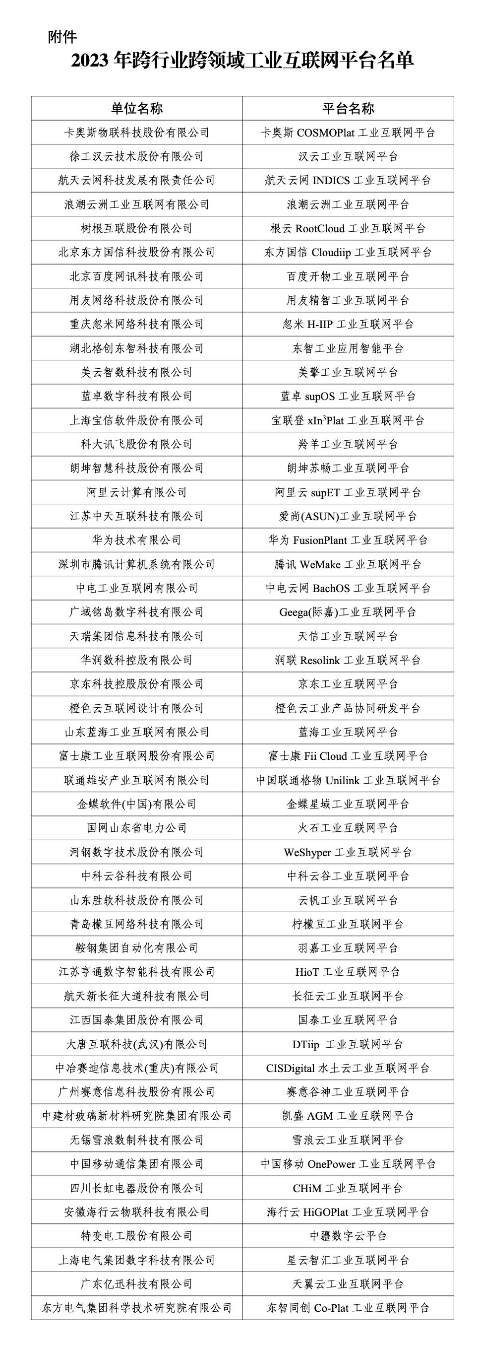 關于公布2023年跨行業跨領域工業互聯網平臺名單的通知