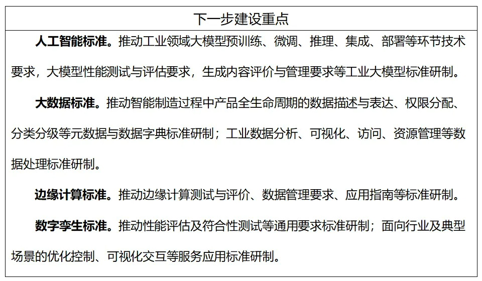 主要包括面向工業領域的大模型、機器學習、知識圖譜的參考架構、系統要求、性能要求、測試方法、數據訓練及生成內容評價等通用要求標準;面向工業領域重點行業及典型場景的模型、算法、知識及系統的集成、部署、應用、管理和運維等服務應用標準。
