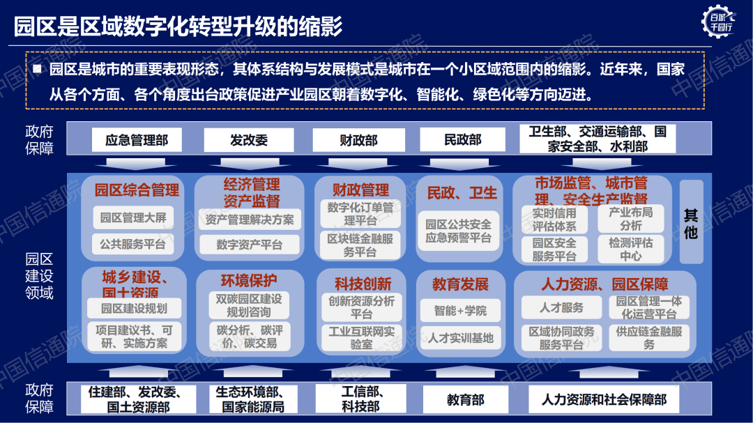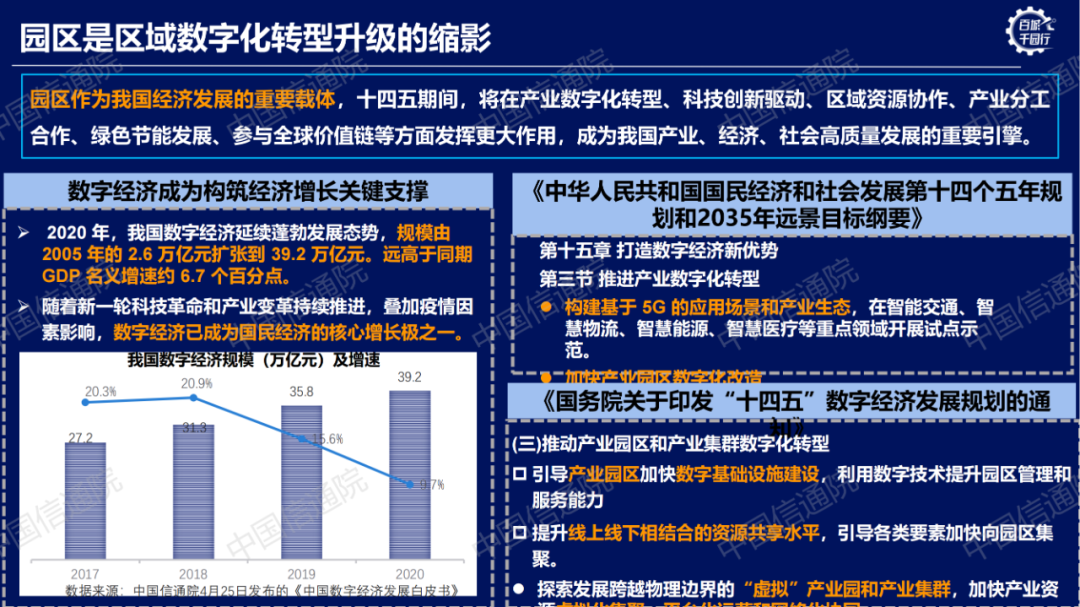 園區數字化轉型是促進我國數字經濟發展的重要戰略。隨著新一代信息技術與實體經濟的深度融合,園區正在加速數字化轉型發展,通過引入工業互聯網,實現園區數字化、綠色化、虛實融合多維度升級改造。