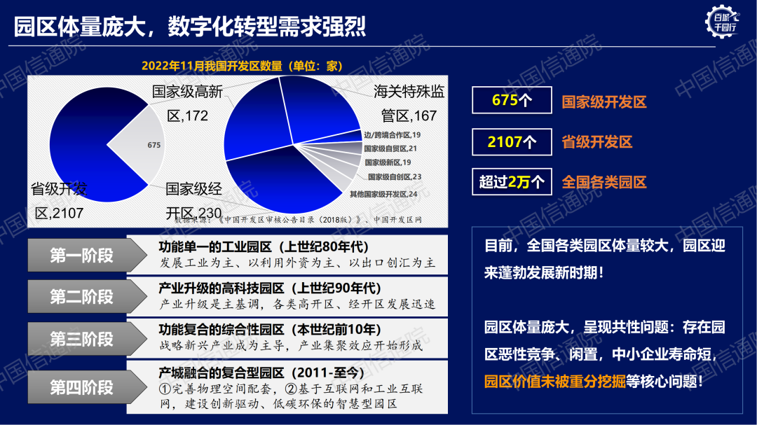 “園區經濟”是改革開放以來中國經濟發展的重要經驗,不僅成為了中國經濟的載體和平臺,也成為區域經濟增長的快速增長極。2022年2月,國務院印發《“十四五”數字經濟發展規劃》,提出要推動園區數字化轉型,引導產業園區加快數字基礎設施建設,探索發展跨越物理邊界的“虛擬”產業園和產業集群。隨著工業互聯網的快速發展和深化應用,工業互聯網園區正在加速崛起,工業園區、高新技術產業開發區、工業化產業示范基地及各種產業集聚區正在加速引入工業互聯網技術和理念進行建設、改造或升級。