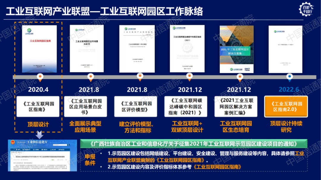 為有效指導工業互聯網園區的建設、運營與發展,工業互聯網產業聯盟于2020年4月發布《工業互聯網園區指南》,為產業界提供了園區轉型升級的參考和借鑒。隨著國家和各地十四五規劃的相繼出臺,以及圍繞做強做優做大數字經濟、促進數字化綠色化協同轉型發展、加速中小企業特色產業集群發展等政策措施的陸續發布,工業互聯網園區發展進一步提速,并呈現綠色低碳、虛實融合等新發展趨勢。在此背景下,為幫助產業界更加充分了解園區新的發展趨勢,更好地開展工業互聯網園區改造和建設,工業互聯網產業聯盟在工業和信息化部的指導下,編制完成了《工業互聯網園區指南(2.0版本)》(以下簡稱指南(2.0版本))。