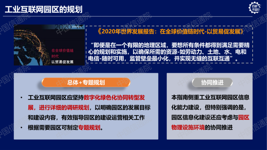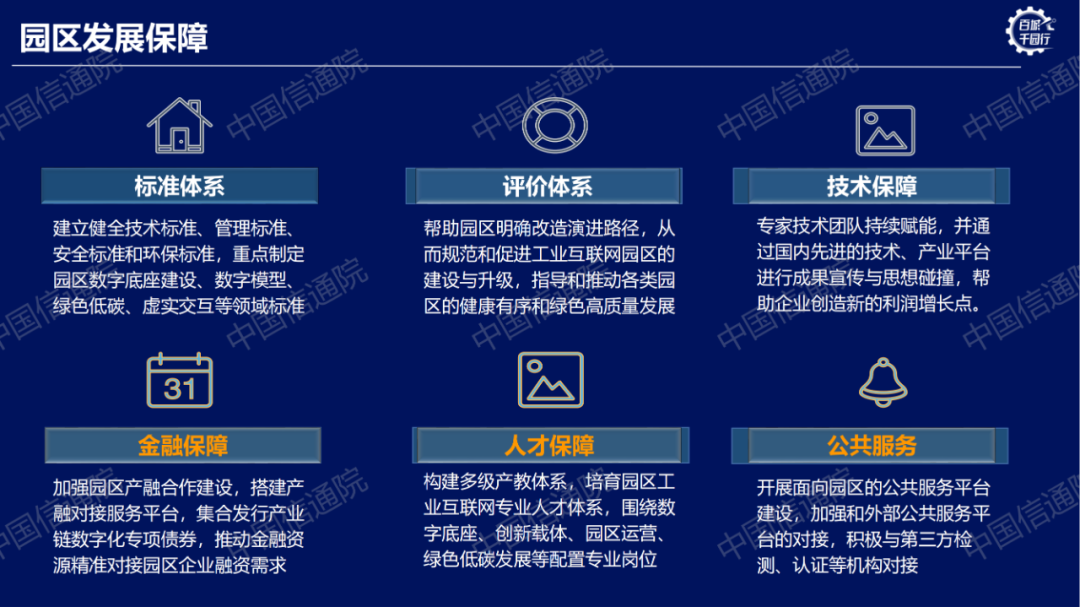 工業互聯網園區的建設原則:統籌規劃,突出特色;園區主導,政府引導;遵循規律,創新驅動;減碳降耗,綠色發展;開放發展,安全可靠