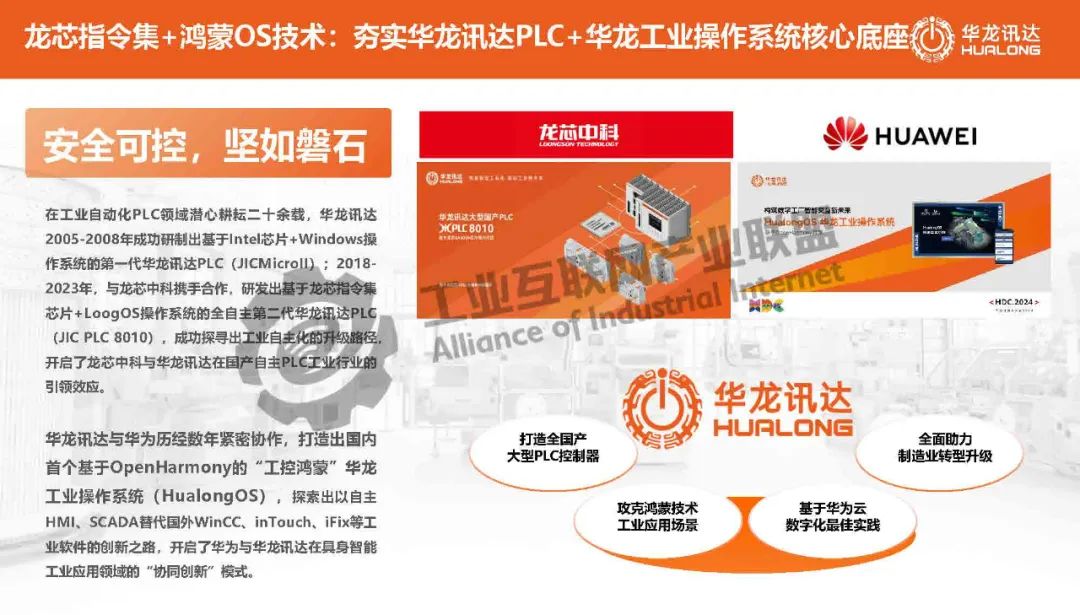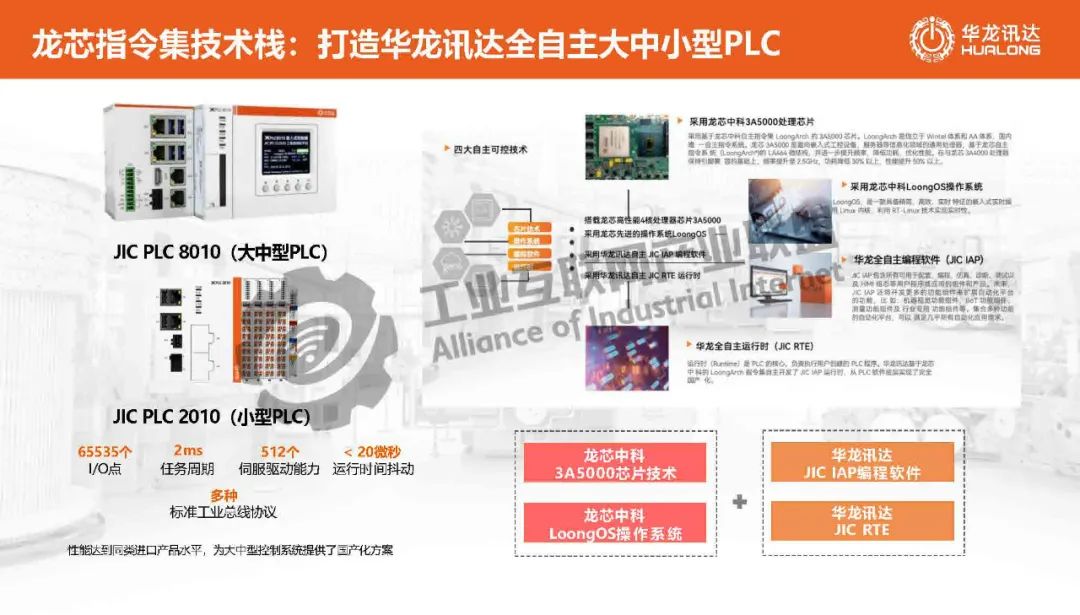 龍小昂介紹,工信部發布《關于印發工業重點行業領域設備更新和技術改造指南的通知》指出到2027年,完成約200萬套工業軟件和80萬臺套工業操作系統更新換代任務。電力、化工、水務、鋼鐵、軍工等行業屬于工業重點行業領域,華龍訊達基于龍芯指令集芯片的國產中大型PLC符合工業操作系統更新換代要求,已在某行業大型裝備、新能源裝備、飛機制造、汽車制造、風電、輕工、產教融合等行業成功實踐應用。
