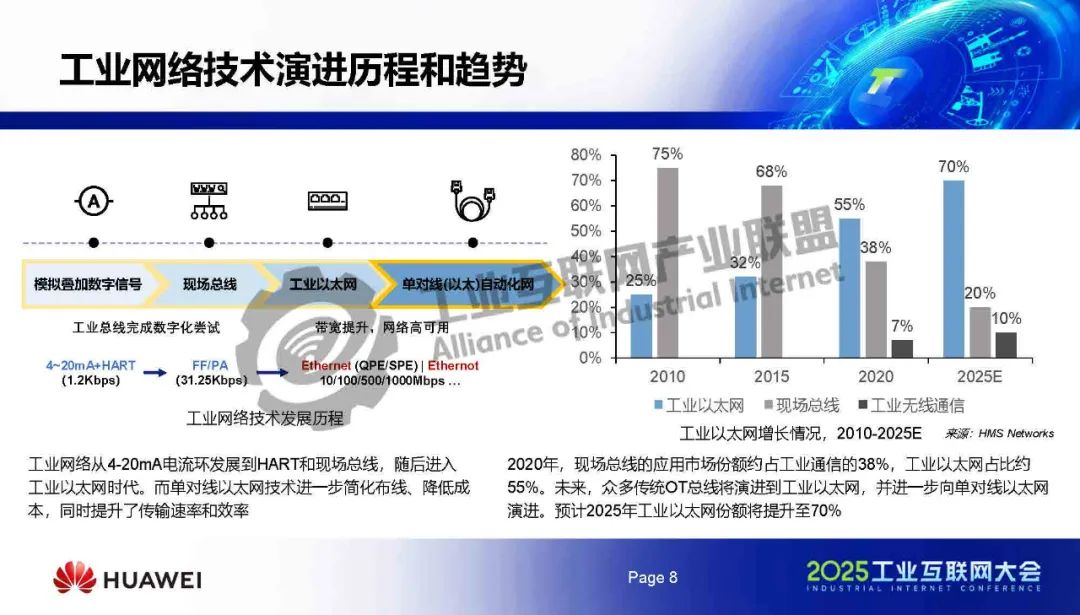 5月21日,在2025工業(yè)互聯(lián)網(wǎng)大會(huì)“新型網(wǎng)絡(luò)化測(cè)控與單對(duì)線網(wǎng)絡(luò)協(xié)同發(fā)展專題活動(dòng)”上,華為網(wǎng)絡(luò)技術(shù)實(shí)驗(yàn)室以太網(wǎng)首席專家鐘其文對(duì)《單對(duì)線自動(dòng)化網(wǎng)絡(luò)技術(shù)報(bào)告》進(jìn)行了解讀。