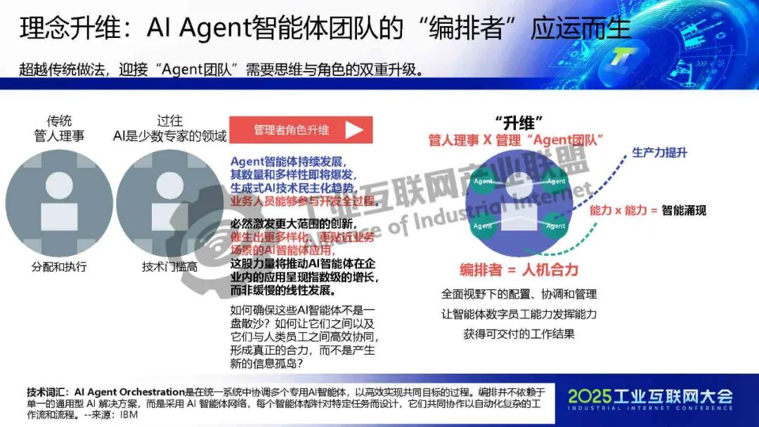 “編排者(Orchestrator)”理念是管理理念的根本性升維。管理核心職責不再僅僅是“管人理事”,更要以“系統思維”去設計和駕馭“人機混合團隊”,這個由人和AI Agent智能體生產力共同構成的、高度復雜的生產系統。
