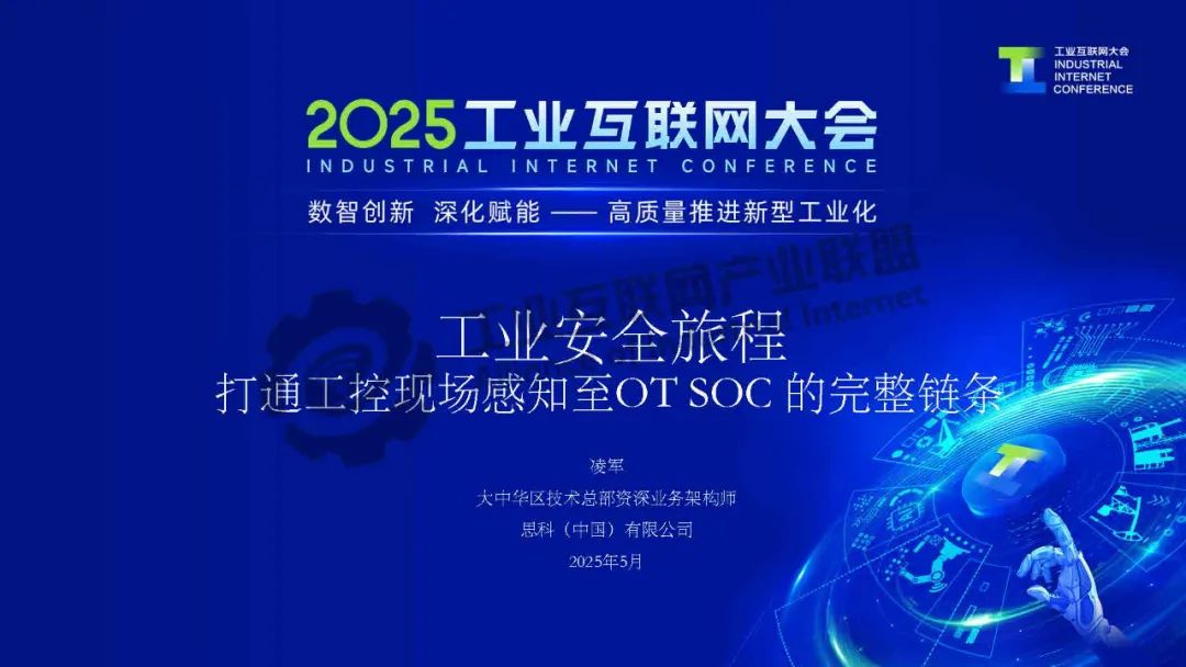 5月23日,在2025工業互聯網大會“新型工業化網絡與數據安全專題活動”上,思科(中國)有限公司大中華區技術總部資深業務架構師凌軍發表了《工業安全旅程 打通工控現場感知至OT SOC 的完整鏈條》的主題演講。