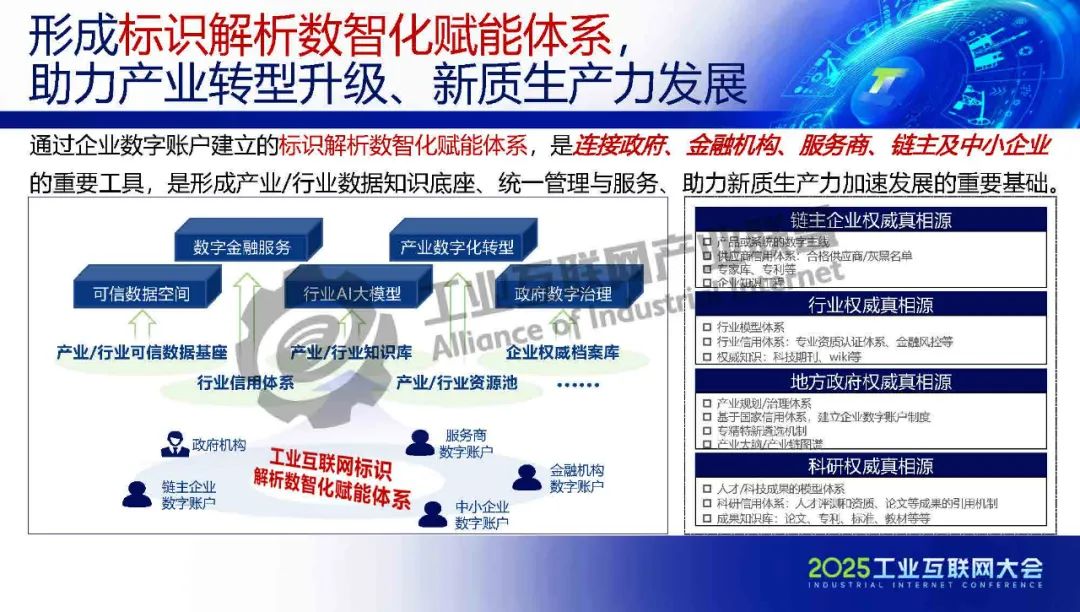 對標識節點進行升級,實現可統一身份、接口、標識、登記、目錄的企業數字賬戶,規范企業數據的歸集、流通與應用,建立企業間互聯互通、互認互信機制,形成工業互聯網標識解析數智化賦能體系的基礎底座。