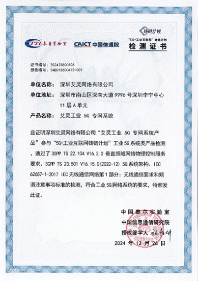 近日,深圳艾靈網(wǎng)絡(luò)有限公司的AI5GS產(chǎn)品順利通過第一批“5G+工業(yè)互聯(lián)網(wǎng)”鑄鏈計劃產(chǎn)品測試,測試內(nèi)容涵蓋Ethernet會話、5G LAN、業(yè)務(wù)傳輸時延、可靠性、工業(yè)網(wǎng)絡(luò)業(yè)務(wù)能力多個方面。