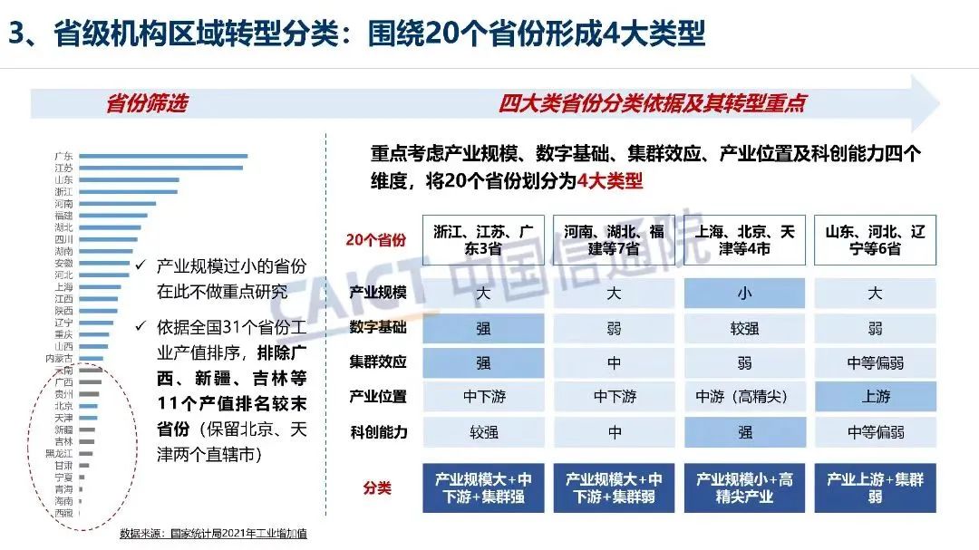 2023年1月7日,“2023年中國信通院ICT+深度觀察報告會-行業(yè)數(shù)字化轉型分論壇”在中國信息通信研究院成功舉辦。在論壇中,信息化與工業(yè)化融合研究所工業(yè)互聯(lián)網(wǎng)平臺與解決方案研究部分享了區(qū)域數(shù)字化轉型的相關研究成果,為產(chǎn)業(yè)界推進路徑提供了方向性參考。黨的二十大報告指出,要堅持把發(fā)展經(jīng)濟的著力點放在實體經(jīng)濟上,推動制造業(yè)高端化、智能化、綠色化發(fā)展。區(qū)域是產(chǎn)業(yè)高質量發(fā)展的關鍵載體,區(qū)域數(shù)字化轉型有望帶動區(qū)域產(chǎn)業(yè)鏈條化、集群化、規(guī)模化轉型升級。基于此,信息化與工業(yè)化融合研究所工業(yè)互聯(lián)網(wǎng)平臺與解決方案研究部重點研究區(qū)域數(shù)字化轉型的關鍵路徑,對區(qū)域數(shù)字化轉型的背景、內涵、框架、模式等關鍵內容給出了分析研判,并結合區(qū)域產(chǎn)業(yè)稟賦,有針對性地對各類省級機構的轉型策略與路徑提出建議。當前我國區(qū)域數(shù)字化轉型正處于起步階段,應持續(xù)落實區(qū)域發(fā)展理念,探索規(guī)模化推進路徑。下一步,工業(yè)互聯(lián)網(wǎng)平臺與解決方案研究部將進一步深化相關研究工作,歡迎產(chǎn)業(yè)各界積極參與交流探討,共同推動區(qū)域產(chǎn)業(yè)高質量發(fā)展邁向新階段。