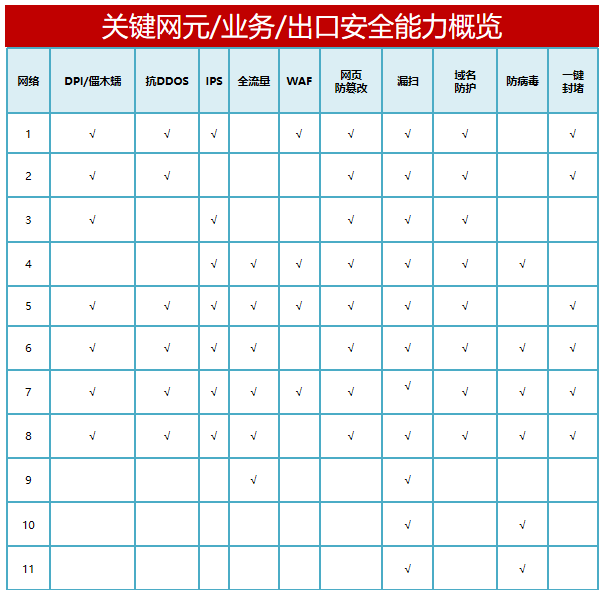 細分終端、網元、業務、出口,統籌構建網絡安全“集中+分布”協同防護能力。依托網絡安全感知平臺,提升網絡安全集中監控水平。針對重保場景,健全網絡安全風險檢測與處置能力。