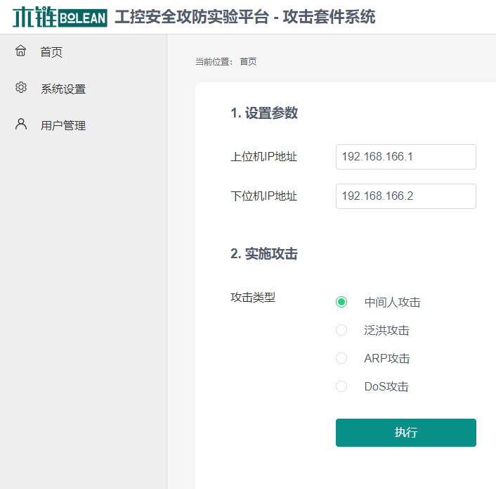 攻擊套件系統提供一些工控環境中常見的攻擊手段,包括嗅探、IO點篡改、中間人攻擊、U盤攻擊、泛洪攻擊、DoS攻擊等等。
